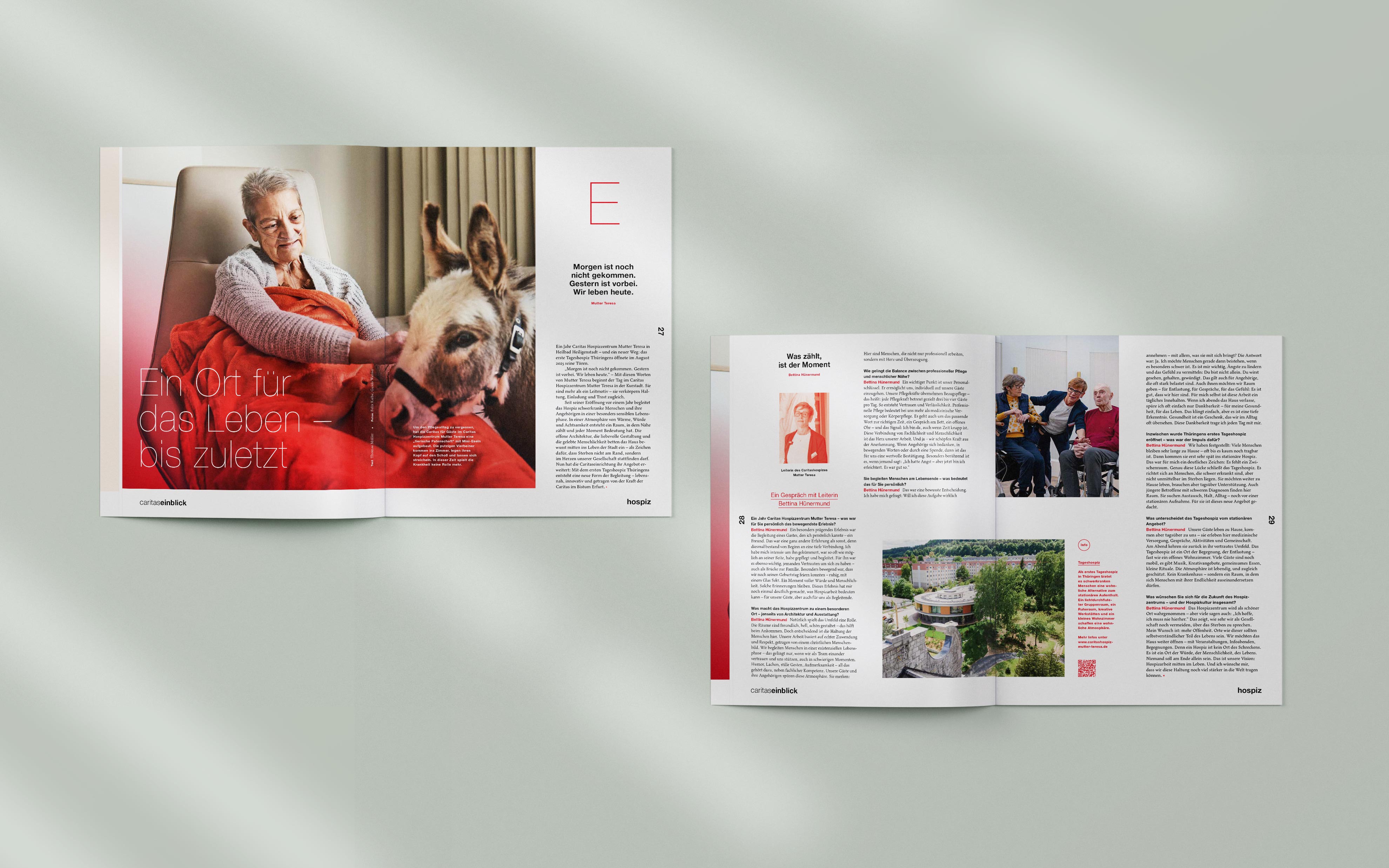 Ziel war es, ein modernes, redaktionell starkes Format zu gestalten, das die vielfältige Arbeit der Caritas in Thüringen sichtbar macht. Das Magazin erzählt eindrucksvolle Geschichten zu den Themen Migration, Hospizarbeit, Fundraising, Zahlen & Fakten und zum Jahresabschluss 2024 – und zeigt, wie engagiert die Caritas Menschen in Thüringen unterstützt: von gelungener Integration über innovative Hospizprojekte bis hin zu Pflege, Ausbildung und sozialer Teilhabe.
