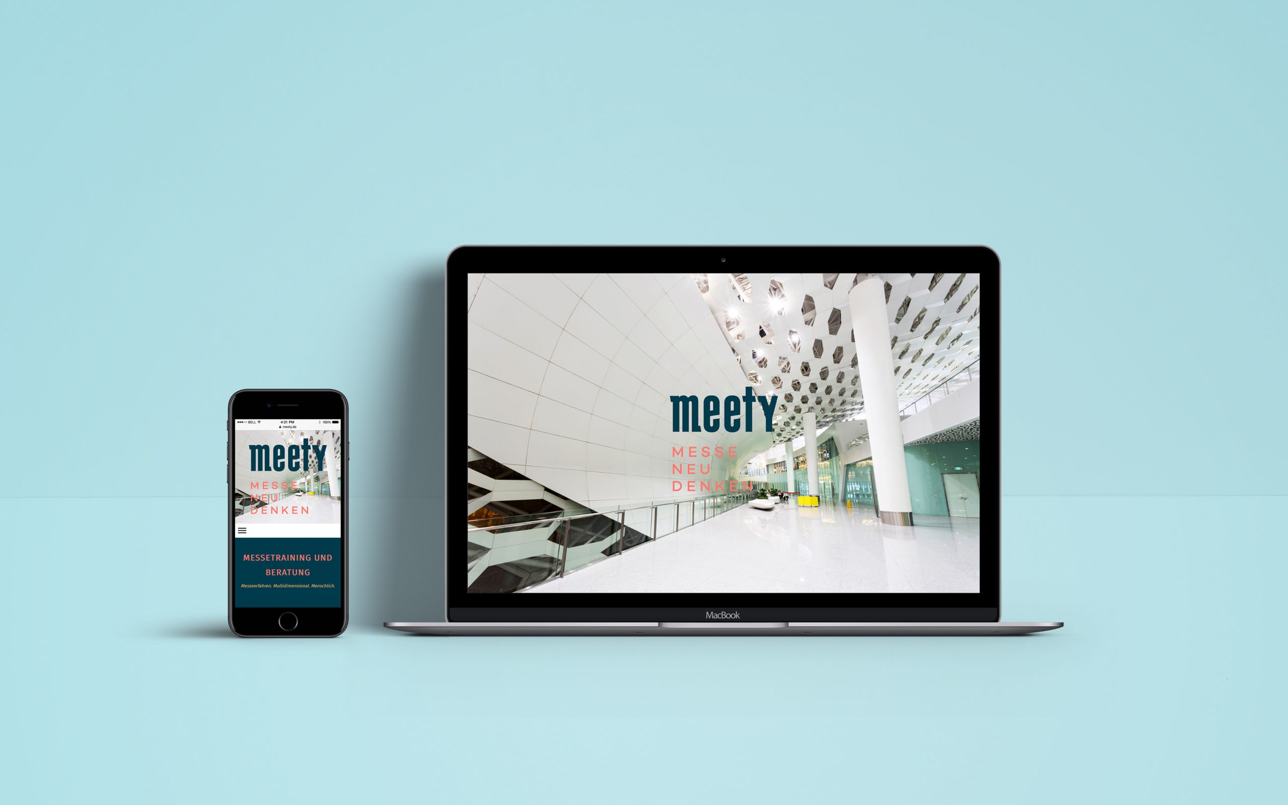 Studio Botschaft wurde von meety dazu beauftragt ein komplettes Corporate Design zur Firmengründung zu entwickeln: Logo, Farbgebung, Hausschrift und Visitenkarten waren hierbei die ersten Massnahmen. meety hat sich bei seinem Corporate Design für einen sehr mutigen und modernen Entwurf entschieden, der gut zu dem Slogan „Messe Neu Denken“ passt. Ende 2023 kam dann die Beauftragung für die neue Website hinzu. Eine wichtige Funktion sind hier die Webinare, welche von dem Gründer Daniel Gundelach angeboten werden.