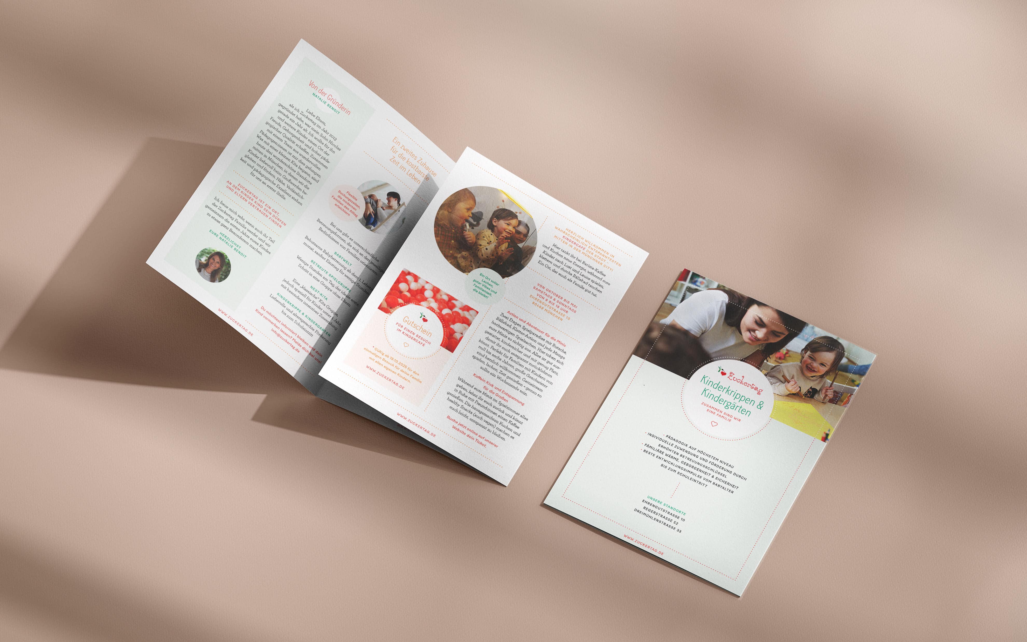 Was 2013 mit einer kleinen Kita begann, ist heute ein liebevoll gewachsenes Konzept mit drei wunderschönen Standorten mitten in München. Bei Zuckertag werden Kinder in Krippe und Kindergarten achtsam beim Großwerden begleitet und individuell gefördert. Ergänzt wird das Angebot durch die Babywelt, betreute Spielgruppen, ein Coworking-Café für Eltern, ein eigenes Kindercafé sowie vielfältige Kurse und Events.