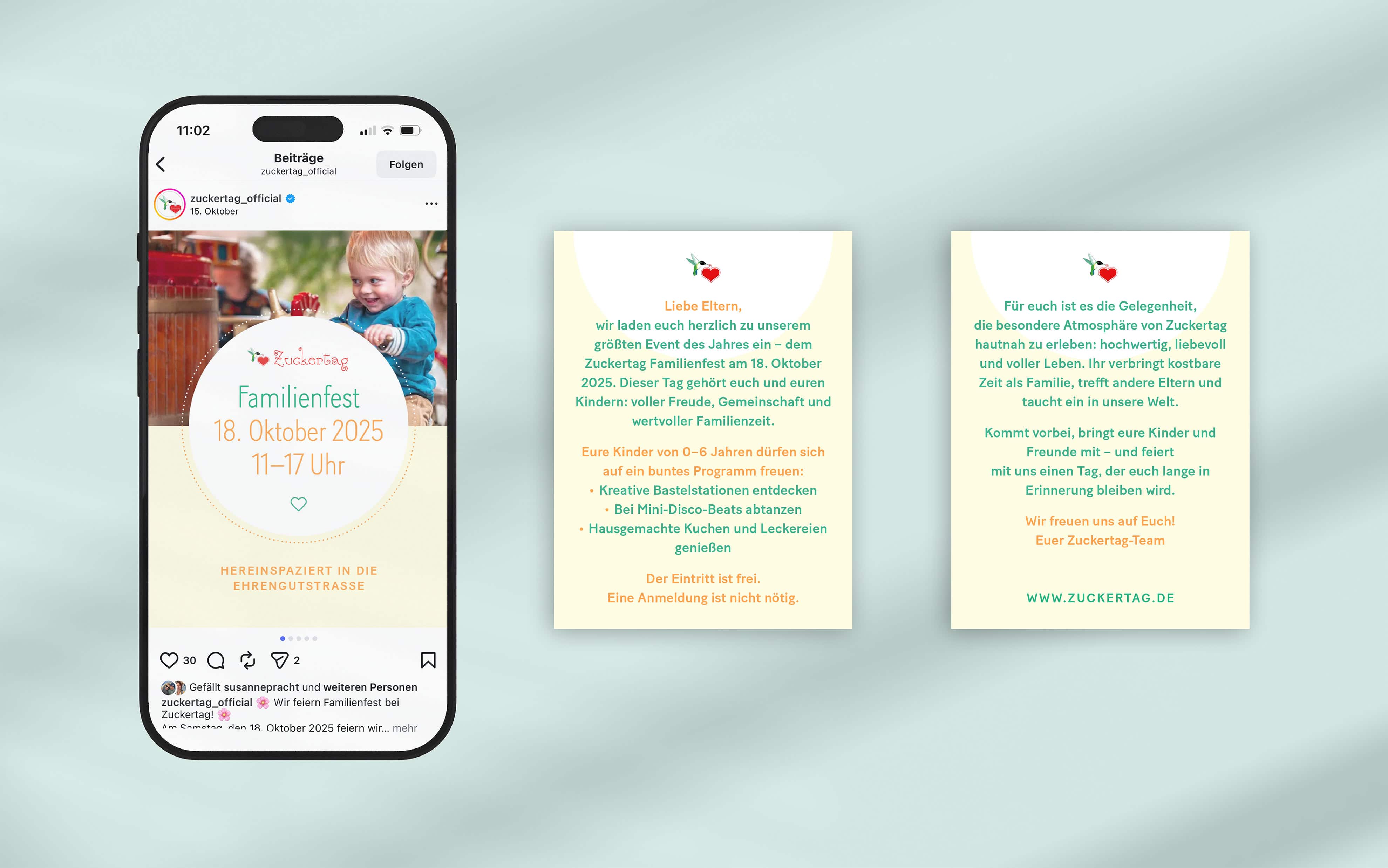 Seit der Gründung von Zuckertag im Jahr 2013 begleitet Studio Botschaft das Projekt ganzheitlich und entwickelte das komplette Corporate Design. Dieses wird kontinuierlich an neue Anforderungen angepasst und behutsam weiterentwickelt.