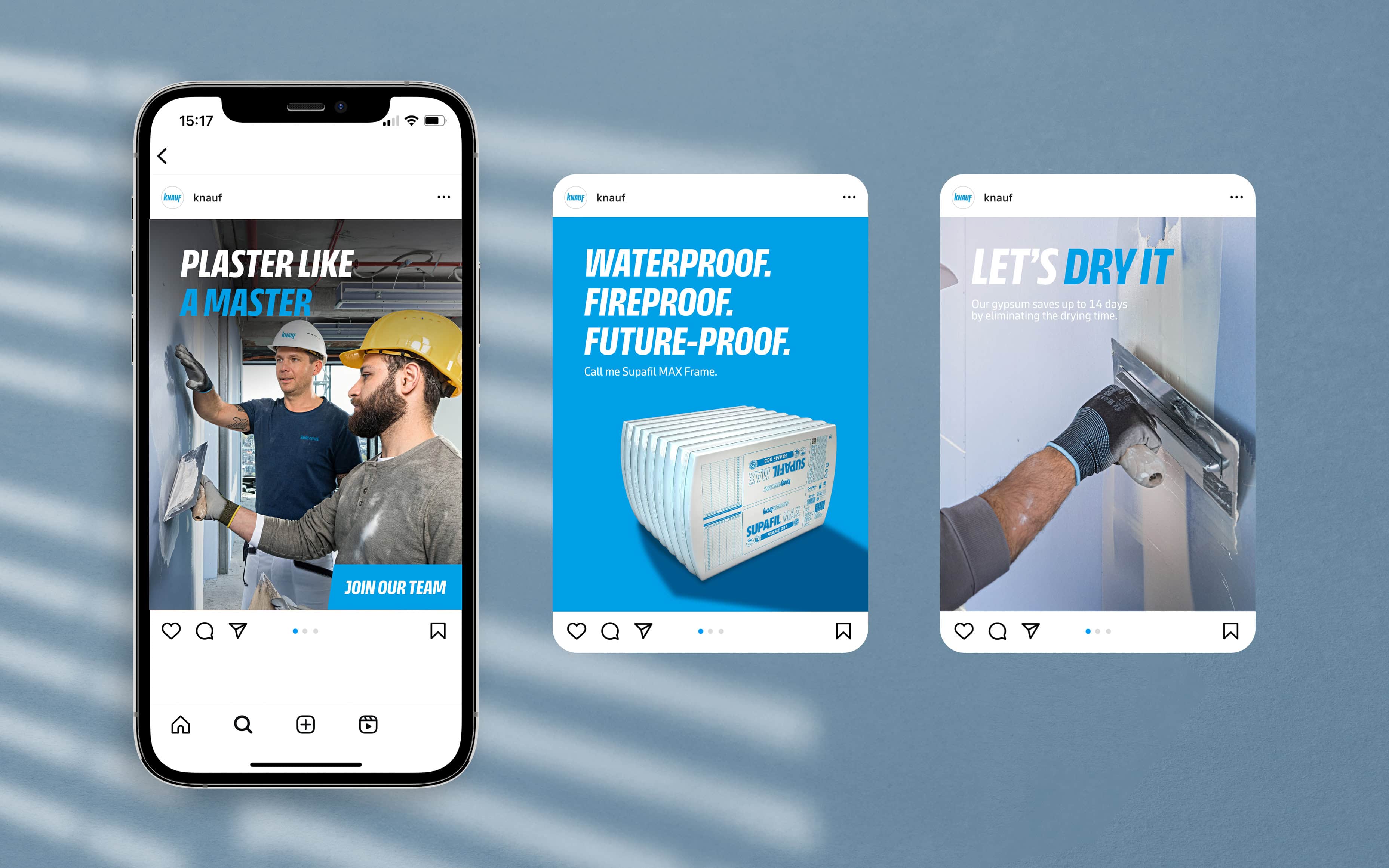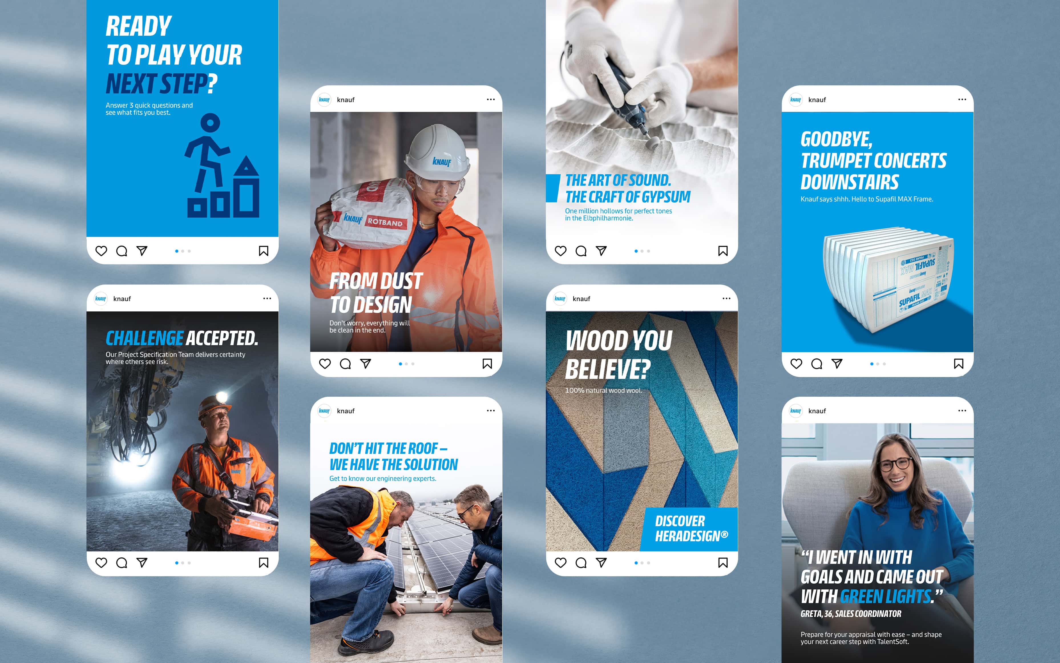 Für Knauf entwickelten wir Lighthouse Content für die Social-Media-Kommunikation. Im Fokus standen die drei Themenfelder Gypsum, Insulation und Ceiling.